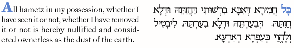 After burning the hametz, it is necessary to recite the Bitul which is a declaration nullifying any leftover hametz that we may not have seen or removed during Bedikat Hametz. The Bitul must be recited in a language which the person understands.