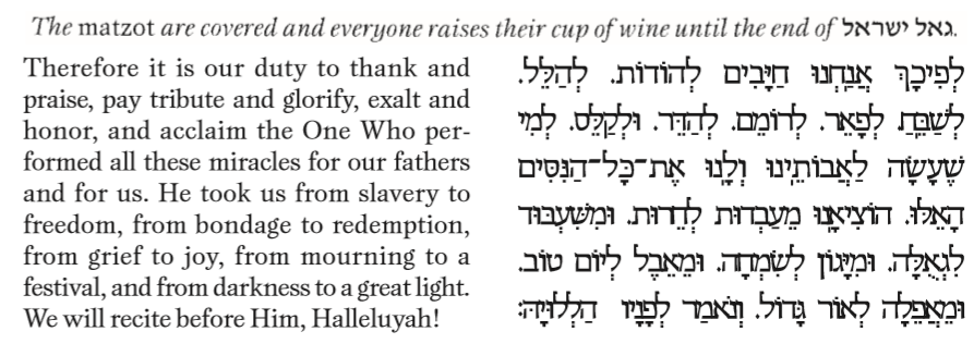 Another reason, stated by Hazal, connects the four cups of wine with the four times Pharaoh’s cup is mentioned in Sefer Bereishit. Both Yosef and Pharaoh’s sar hamashkim, chief wine steward were imprisoned together in Egypt. Pharaoh’s cups are an allusion to Bnei Yisrael’s slavery. It is as if Hashem were saying to Yosef, “The slavery begins as the ‘cup’ is put into the hands of Pharaoh. In the end, however, the cup will be taken from him as your children are redeemed, and they will subsequently thank Hashem by drinking four times from the cup which represents salvation.”