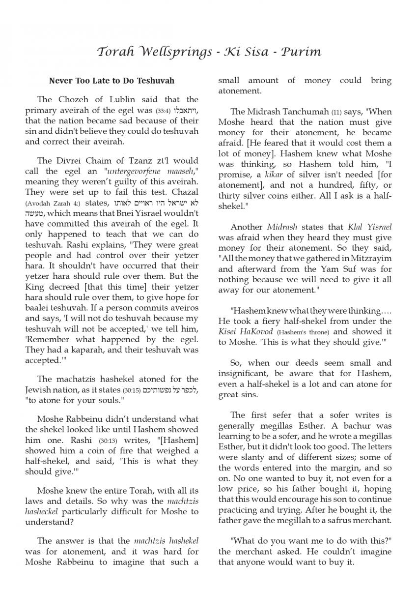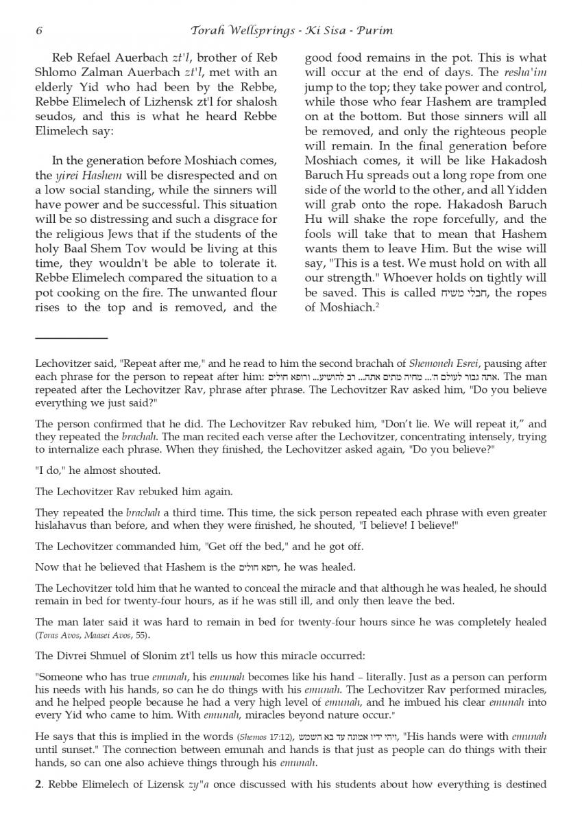 The weekly collected thoughts on the week's parsha from Rabbi Elimelech Biderman Shlita