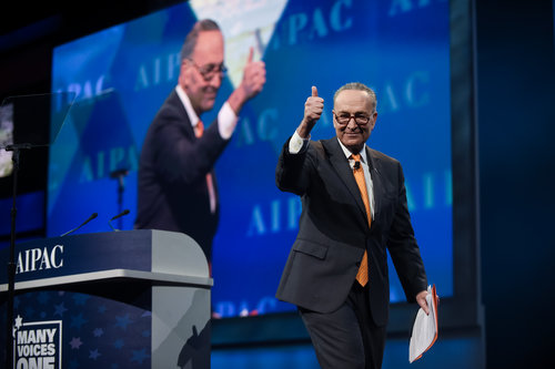 Sen. Chuck Schumer (D-N.Y.), pictured here at the 2017 AIPAC Policy Conference, said the evidence gathered on the Go Palestine summer camp's anti-Israel activities is “disturbing” and that USAID “must immediately investigate it.” Credit: AIPAC.