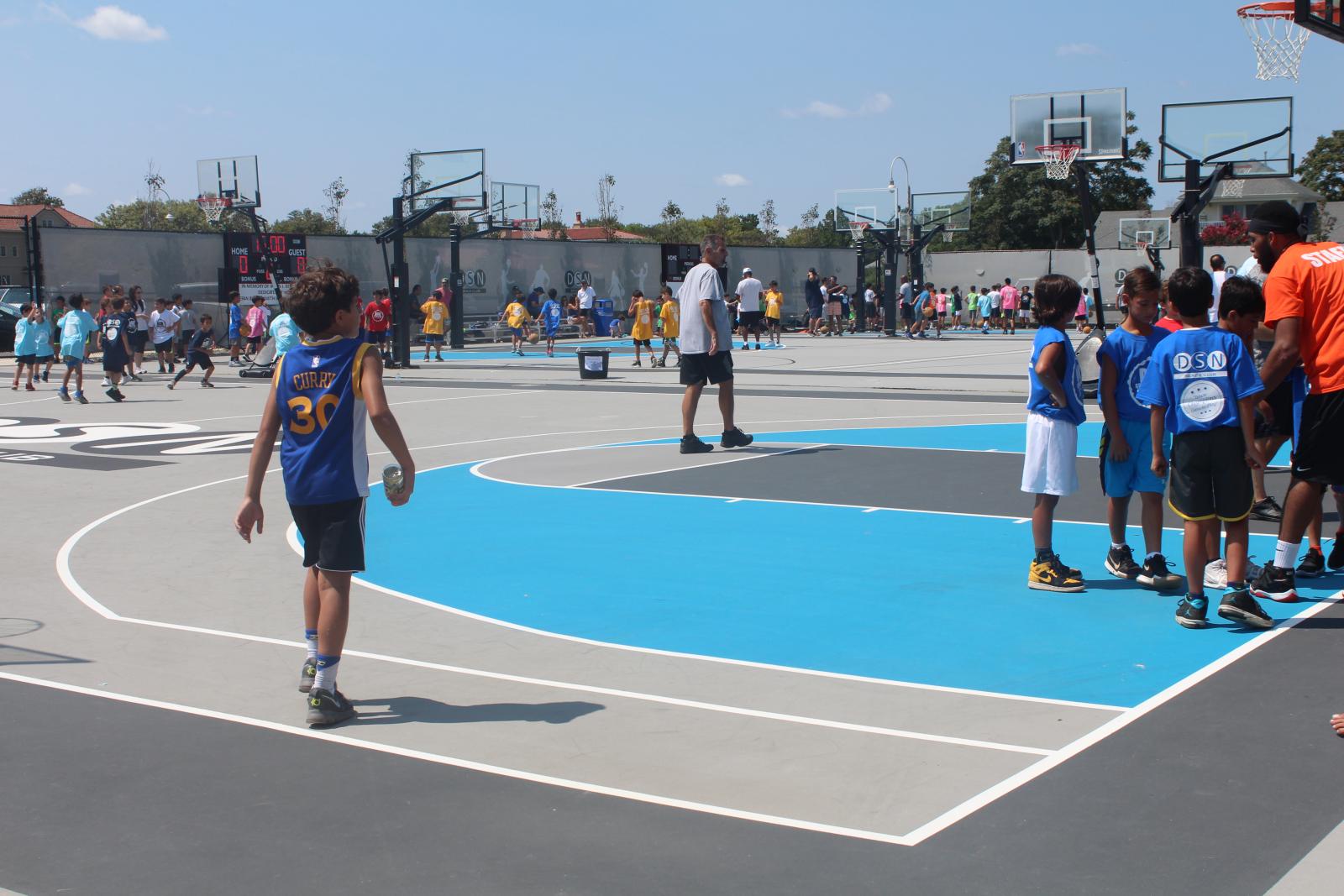 The basketball courts and soccer fields were packed with players while the sidelines were filled with siblings and parents spectating and cheering. Pizza and salads were served for the hungry players and attendees. Later on in the evening a barbecue went underway. Hydration stations were set up in the form buckets filled with ice, Gatorade, and water for players and spectators.