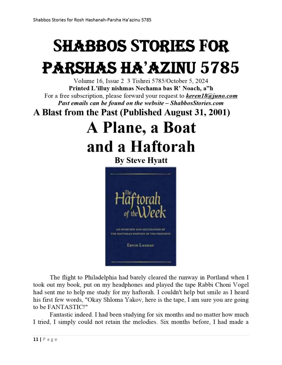 A Plane, a boat, and a Haftorah