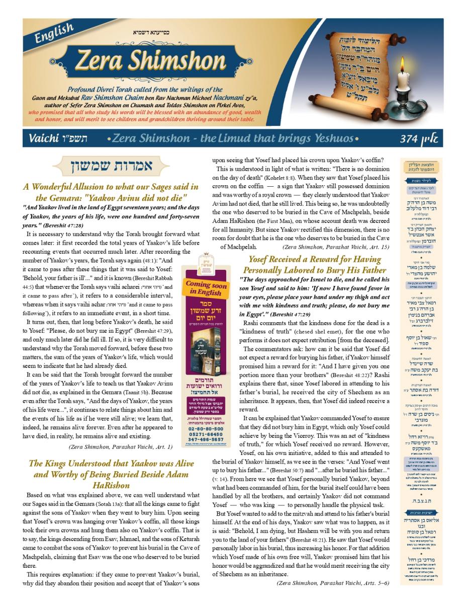 A Wonderful Allusion to what our Sages said in the Gemara: "Yaakov Avinu did not die"