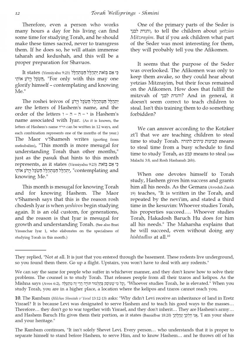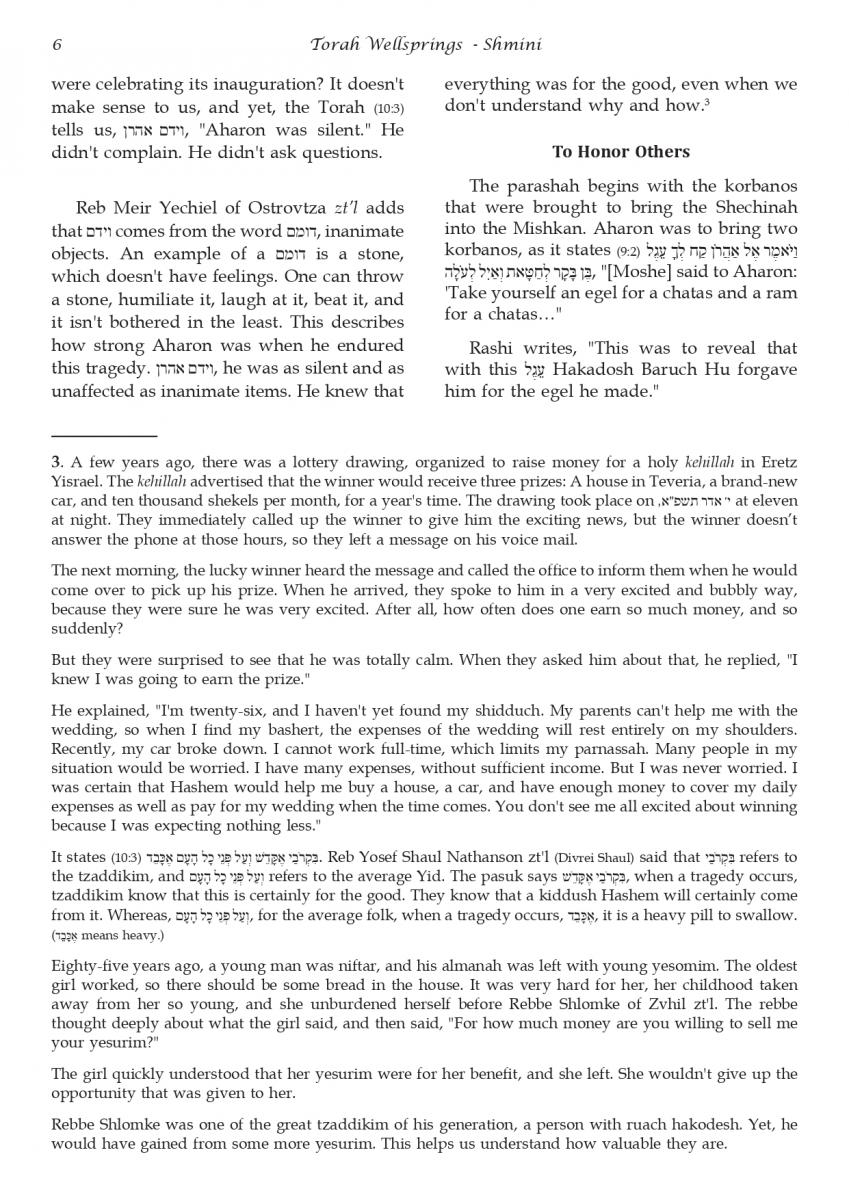 The weekly collected thoughts on the week's parsha from Rabbi Elimelech Biderman Shlita