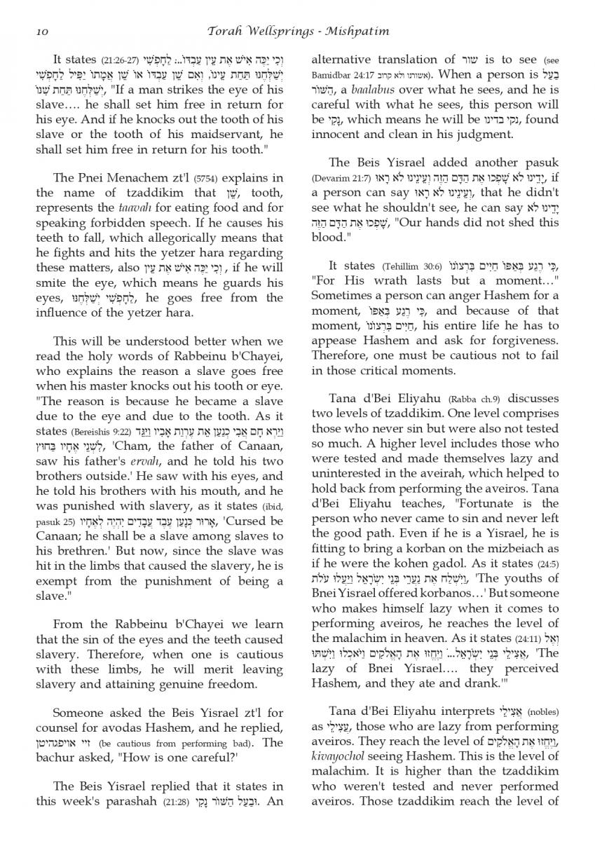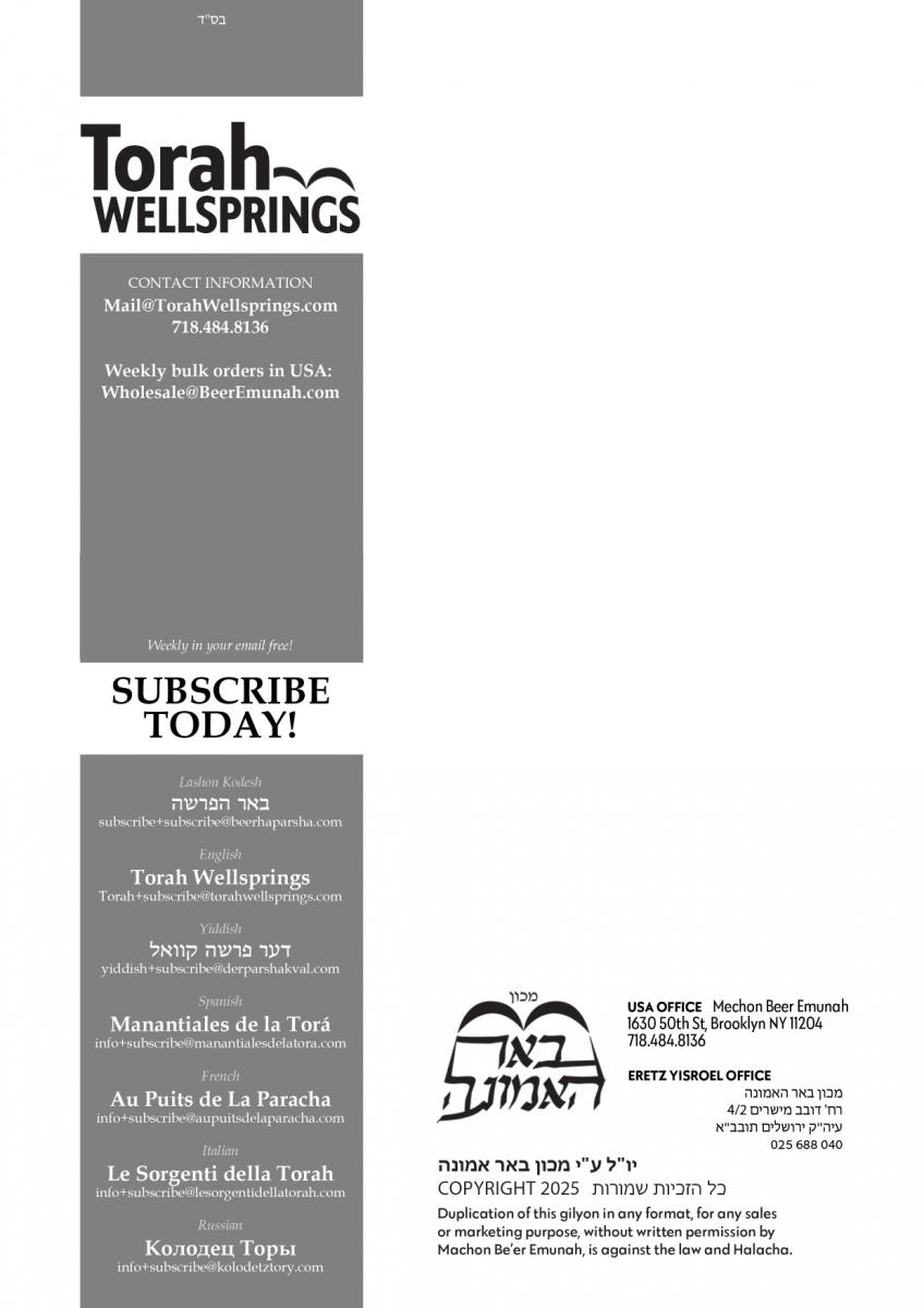 The weekly collected thoughts on the week's parsha from Rabbi Elimelech Biderman Shlita