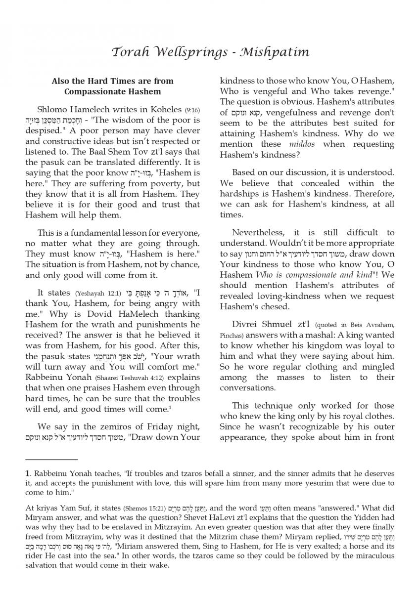 Also the Hard Times are from Compassionate Hashem