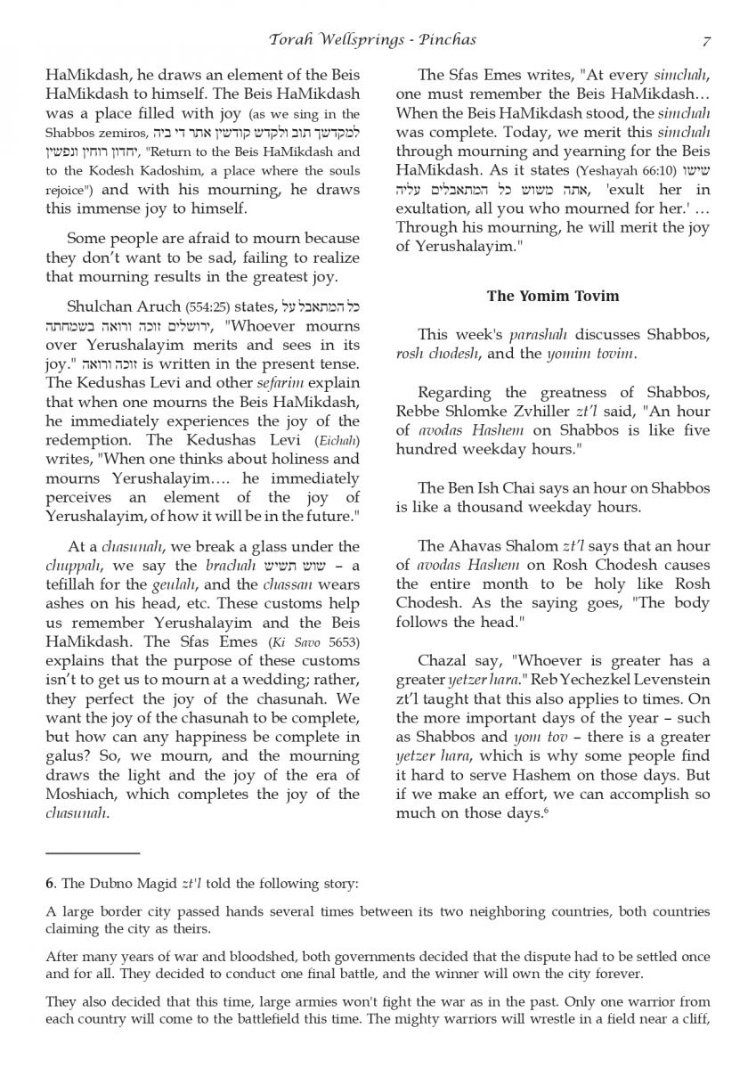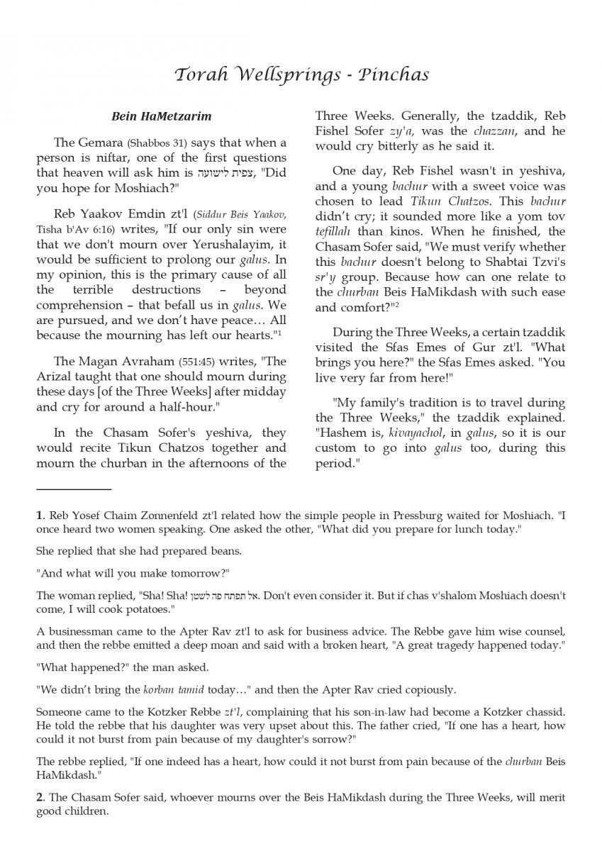 The weekly collected thoughts on the week's parsha from Rabbi Elimelech Biderman Shlita