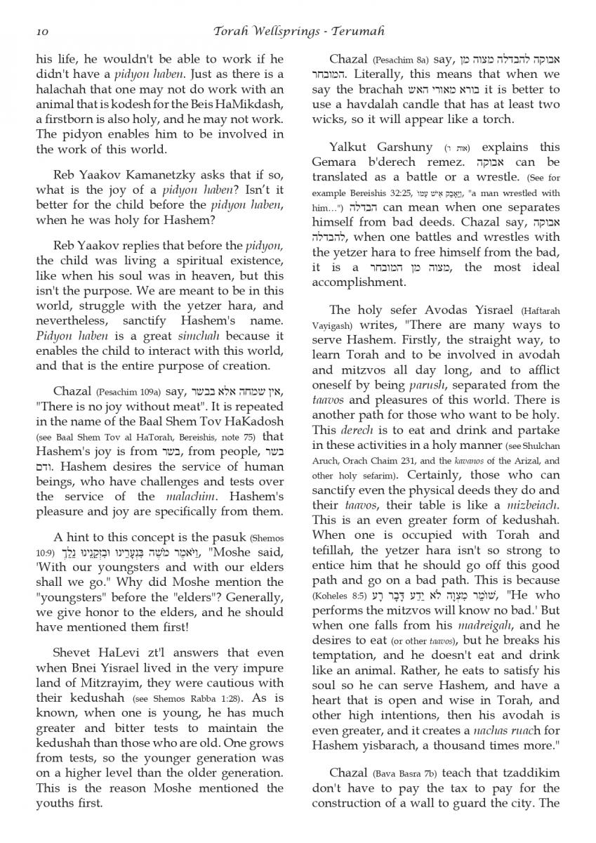 The weekly collected thoughts on the week's parsha from Rabbi Elimelech Biderman Shlita