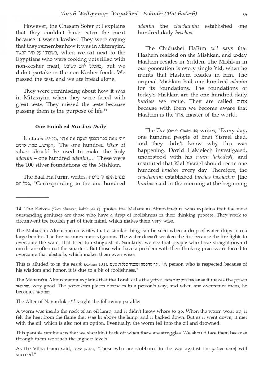 The weekly collected thoughts on the week's parsha from Rabbi Elimelech Biderman Shlita