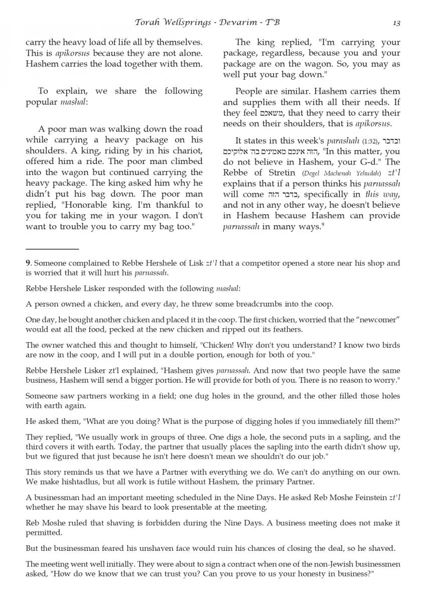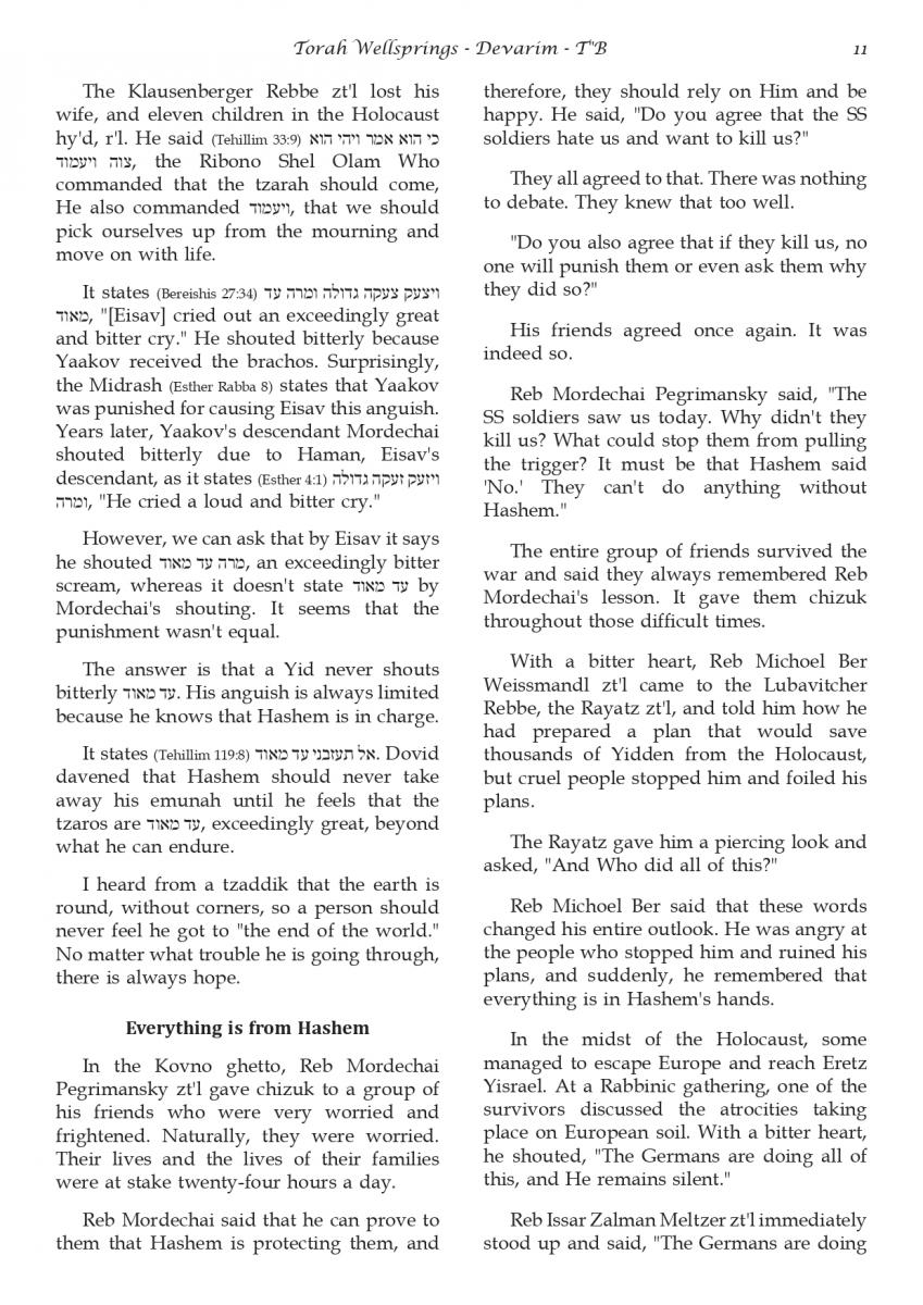 The weekly collected thoughts on the week's parsha from Rabbi Elimelech Biderman Shlita