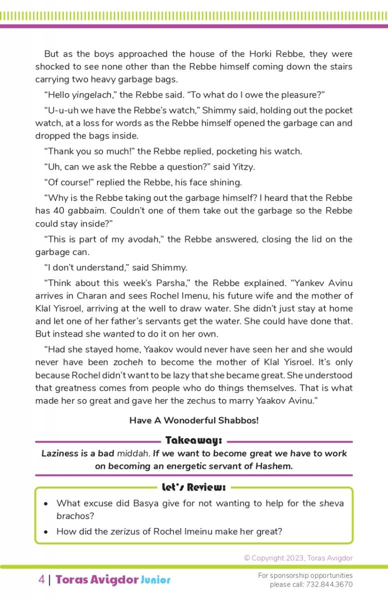 Toras Avigdor was founded with the goal of spreading Rav Miller’s Torah and Hashkafos bot for adults and children.
