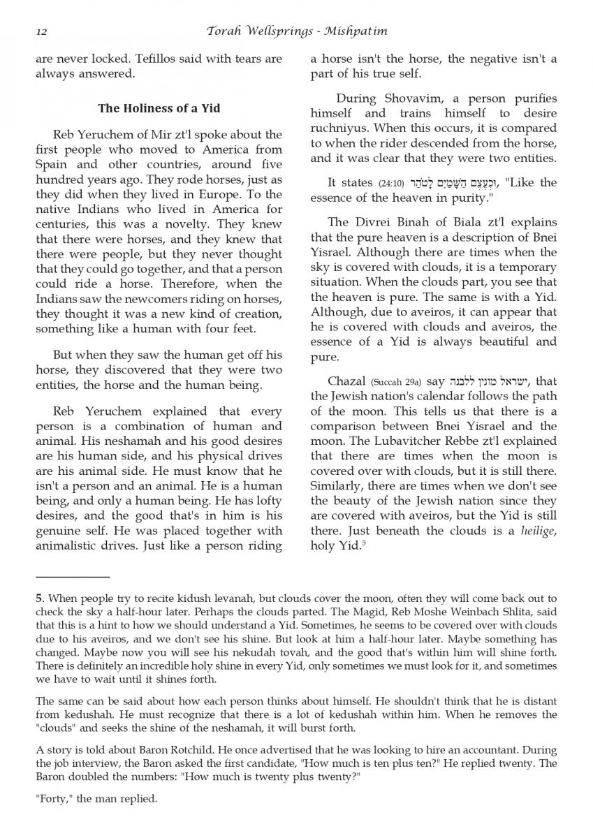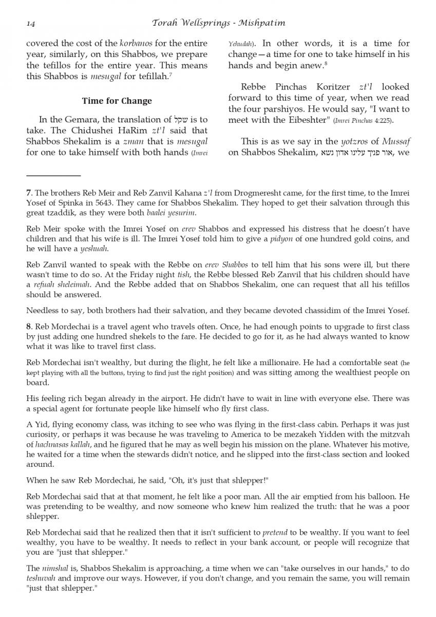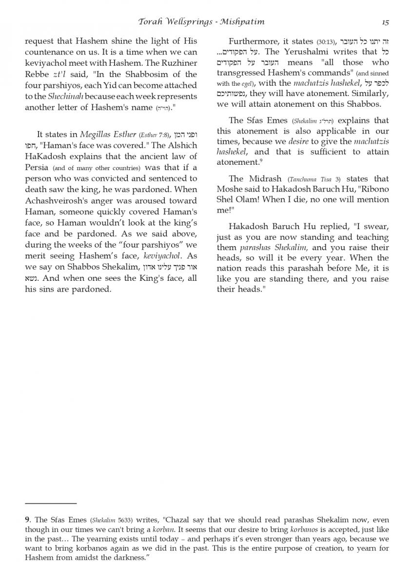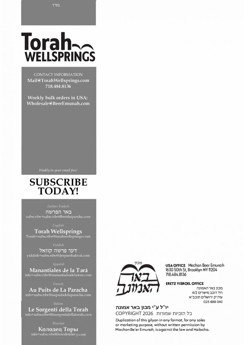 The weekly collected thoughts on the week's parsha from Rabbi Elimelech Biderman Shlita