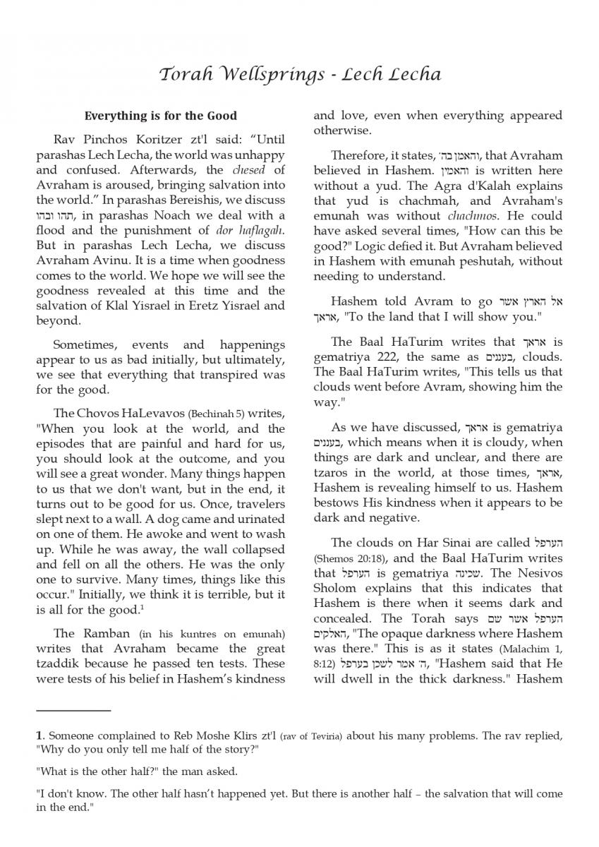 The weekly collected thoughts on the week's parsha from Rabbi Elimelech Biderman Shlita