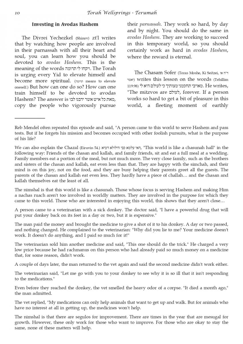 The weekly collected thoughts on the week's parsha from Rabbi Elimelech Biderman Shlita