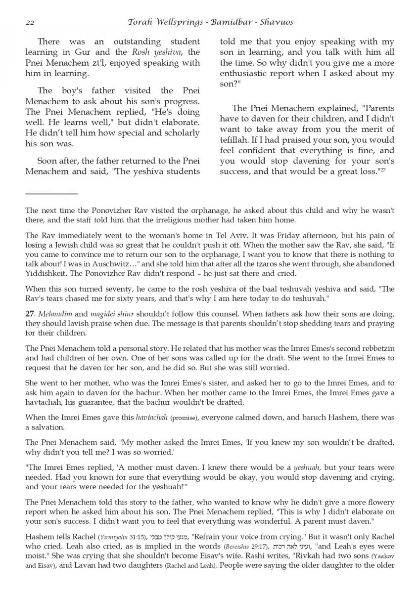 The weekly collected thoughts on the week's parsha from Rabbi Elimelech Biderman Shlita