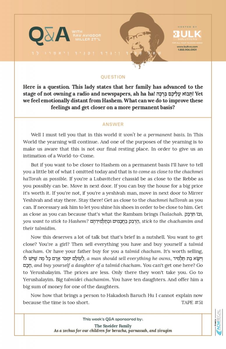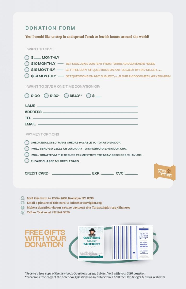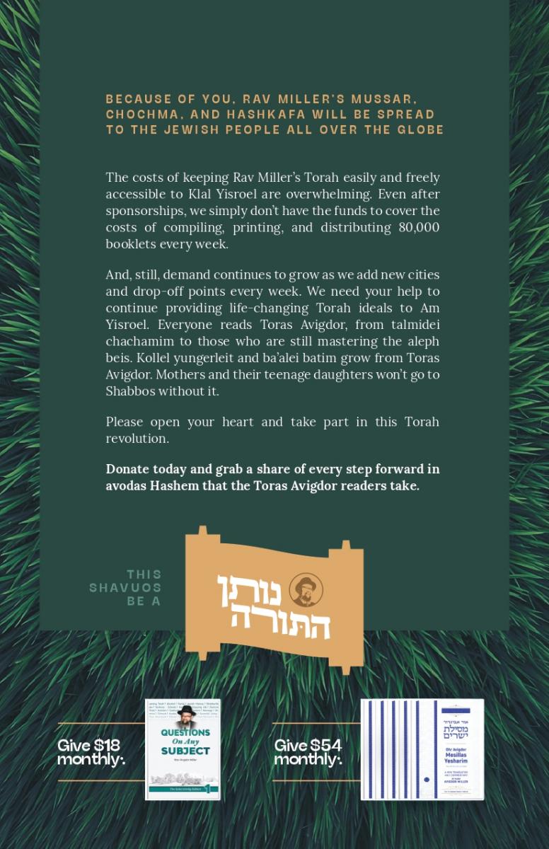 Toras Avigdor was founded with the goal of spreading Rav Miller’s Torah and Hashkafos.