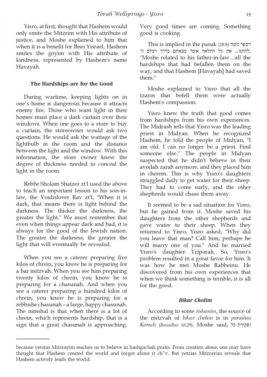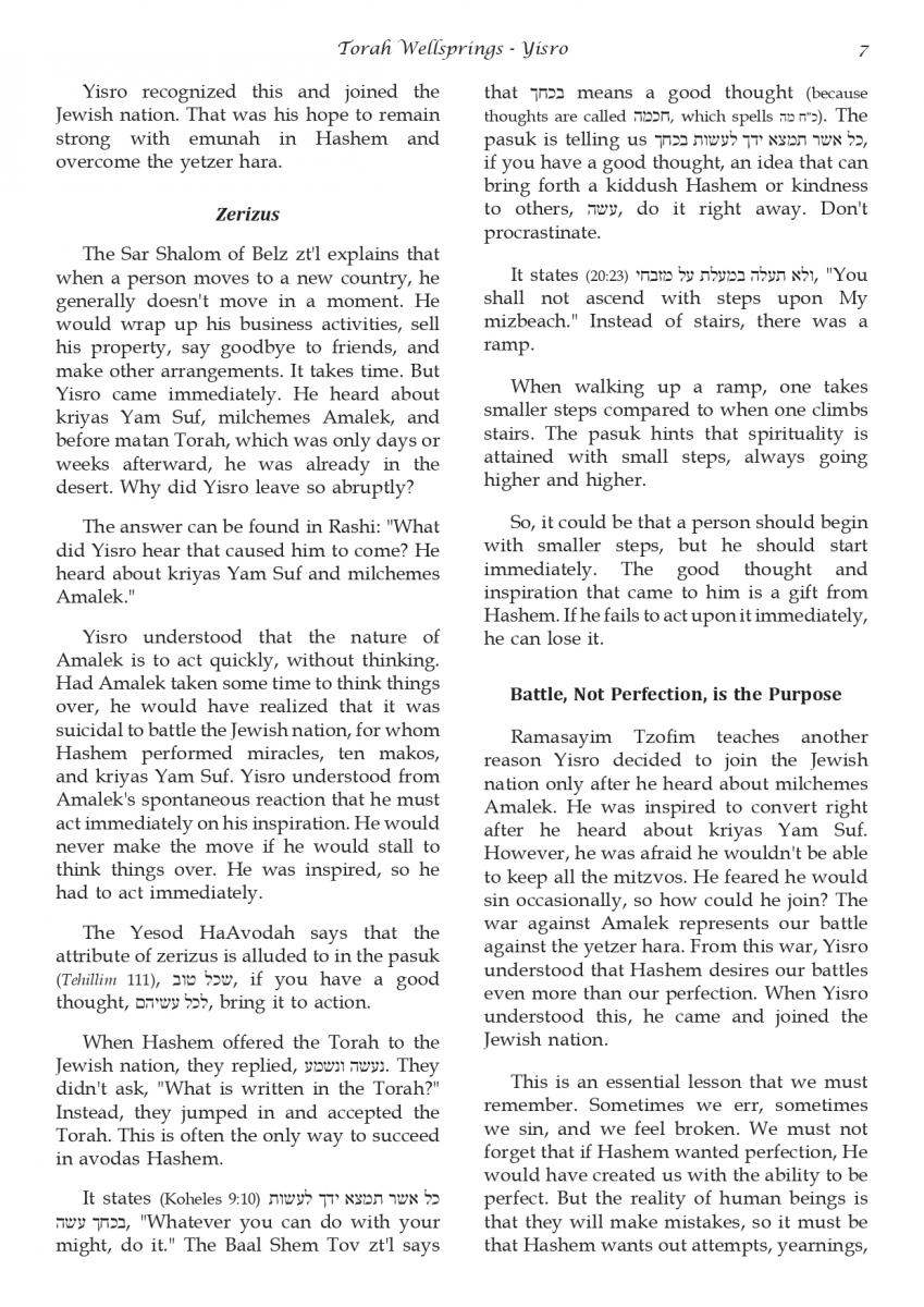 The weekly collected thoughts on the week's parsha from Rabbi Elimelech Biderman Shlita