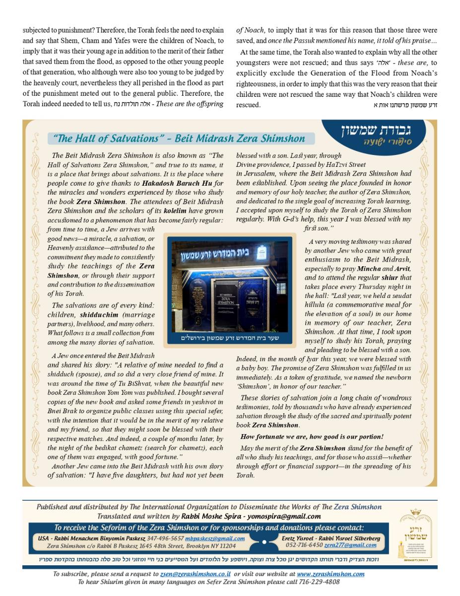 Zera Shimshon - Rabbi Shimshon Chaim ben Rabbi Nachman Michal Nachmani, was a Rabbi of four large communities throughout Italy and in his end of life in the city Reggio Emilia. Rabbi Shimshon Chaim 'Niftar' in the year 1779 in the city Reggio in Itlay. During his funeral, there were many words of praise, not just in his erudition of Torah, but on his love for the Jewish people. The communities in Italy and abroad considered Rabbi Shimshon Chaim their Rebby. Major Rabbis in his generation, wrote amazing things in his honor and wisdom. Including One of the outstanding rabbis figures the 'Hida' (Rabbi Haim Yosef David Azulai ben Rabbi Rephael Yitzhak Zerachia) had testify on Rabbi Shimshon Chaim praise in 'Kedushah' and wisdom and also knowledge in studying 'Kabala' and practical 'Kabala'. Rabbi Shimshon Chaim lived in 'Or ha-Ḥayyim' 'Hakadosh' (Rabbi Chaim ben Atar ben Rabbi Moshe) era, and was in friendship with him. Rabbi Shimshon Chaim had only one child, a son, who died at a young age. Upon this Rabbi Shimshon Chaim decided to dedicate his 'Sefarim' to the memory of this child who had no continuity of a family. In the beginning of his book Rabbi Shimshon Chaim wrote that he need to leave some memory in this world because he has no continuity. And that’s why he wrote the book and named it: "Zera Shimshon", means the Seed of Shimshon. Rabbi Shimshon Chaim publish the book one year before he died. Rabbi Shimshon Chaim placed a lot of his energy, during his lifetime that people should learn from his ''Sefarim''. Rabbi Shimshon Chaim also emphasized, that after his 'Neshama', will leave this world that people should continue to learn from his ''Sefarim''. What is most unusual for a Tzadik of this stature, was that he made a promise. That promise is that anyone that takes upon himself to learn from his writing, he promises "children, praise, health, 'Parnasa', wealth, honor".