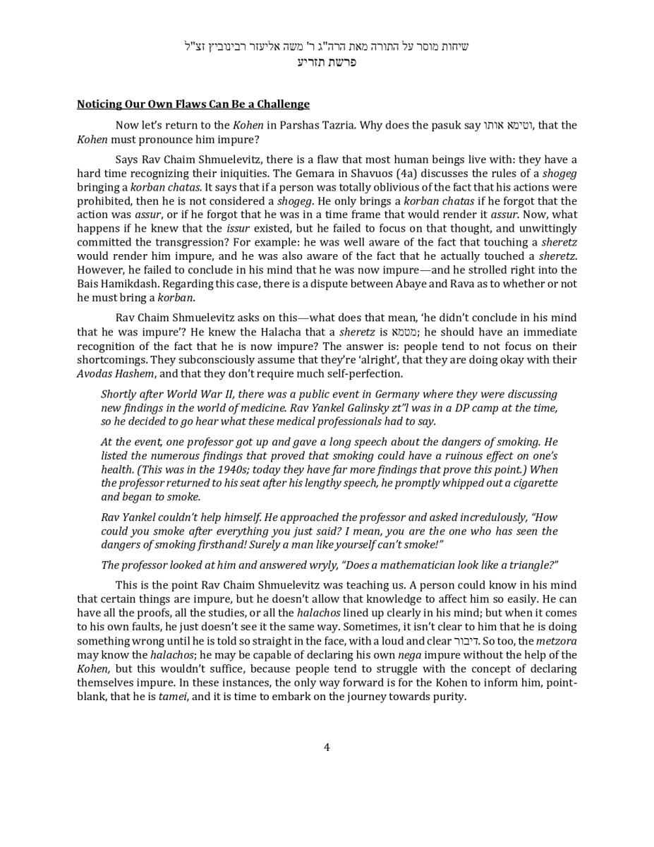 Hagaon Rav Moshe Eliezer Rabinowitz zt”l, was the menahel of Mesivta Keren Hatorah in Lakewood and rov of Bais Medrash Tiferes Shimon.