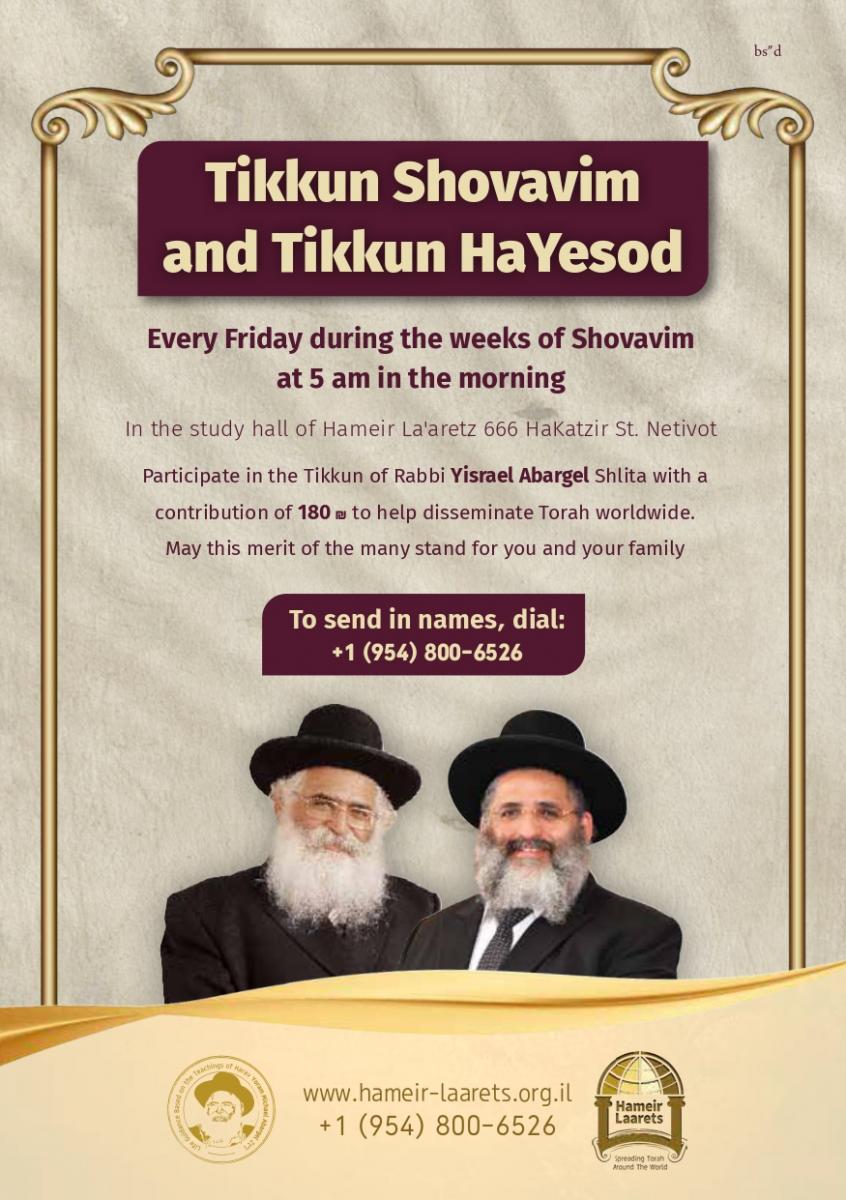 Rabbi Israel Abargel and Hameir Laarets work to spread Torah in Israel and around the world. Their activities include classes, lectures, and daily support and assistance to those in need. Hameir Laarets is a Torah Institute that deals with the publication and distribution of the works and teachings of Rabbi Yoram Michael Abargel zt”l. Hameir Laarets has already released over 50 books and more than 100,000 copies of our publication “Mesillot” are distributed free of charge every week. Our organization also provides daily support and assistance to those in need. Rabbi Yoram Michael Abergel, OB”M was the founder and head of Torah and Hessed institutions called Kol Rina Rav Phelim and Rav Phelim whose center is currently in Netivot . Over 4,000 Avrach scholars study in these institutions. He is the author of: - Bezur Yarom - his lessons on Sefer HaTanya, - Amri Noam - his lessons on the Parshiyot of the week and the festivals of Israel - Kol Rina - prayer arrangement and cycle series