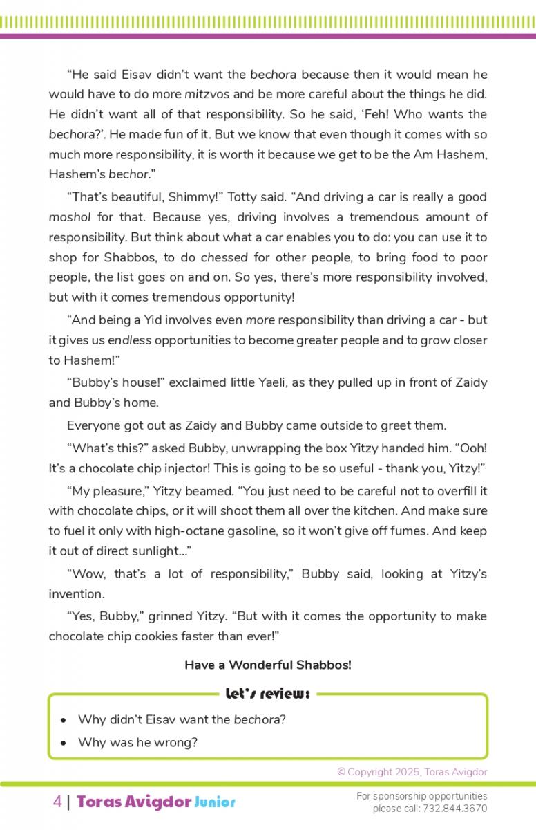 Toras Avigdor was founded with the goal of spreading Rav Miller’s Torah and Hashkafos bot for adults and children.