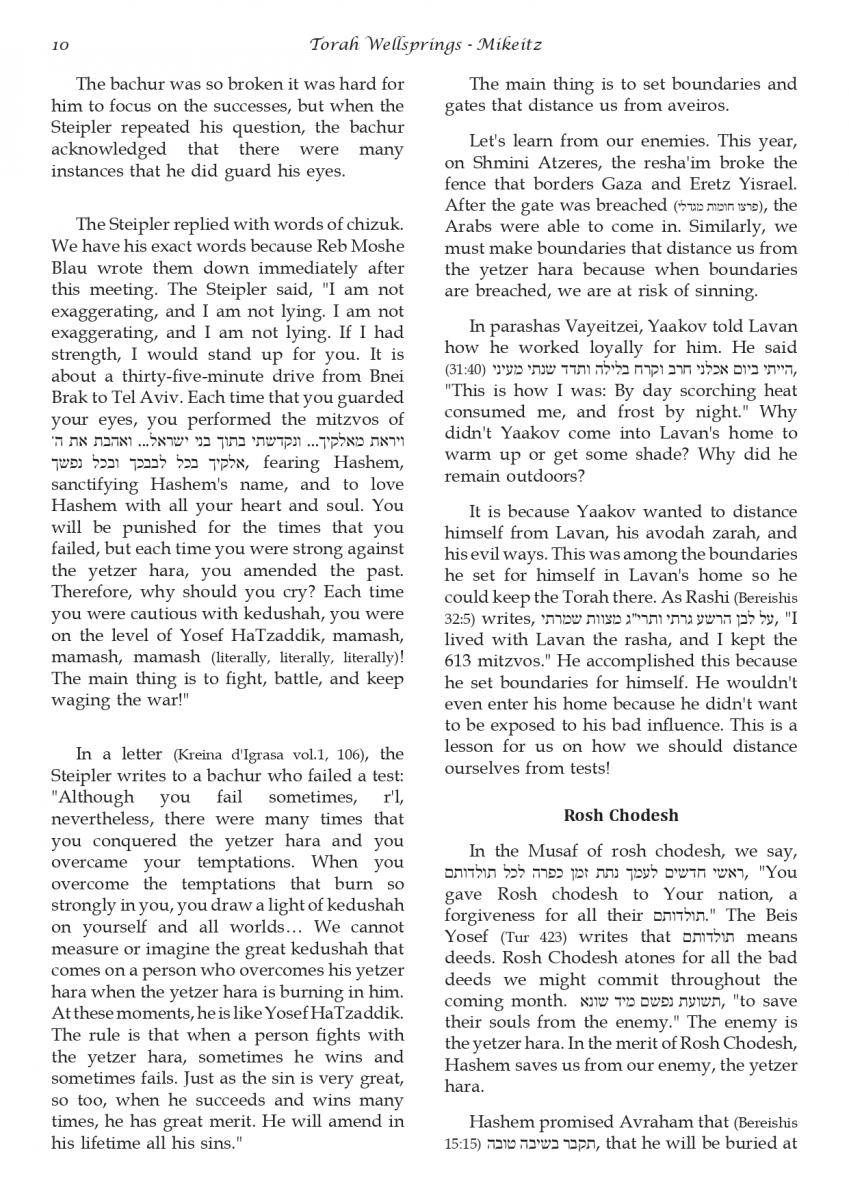 The weekly collected thoughts on the week's parsha from Rabbi Elimelech Biderman Shlita