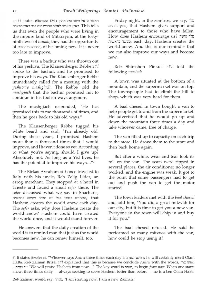 The weekly collected thoughts on the week's parsha from Rabbi Elimelech Biderman Shlita