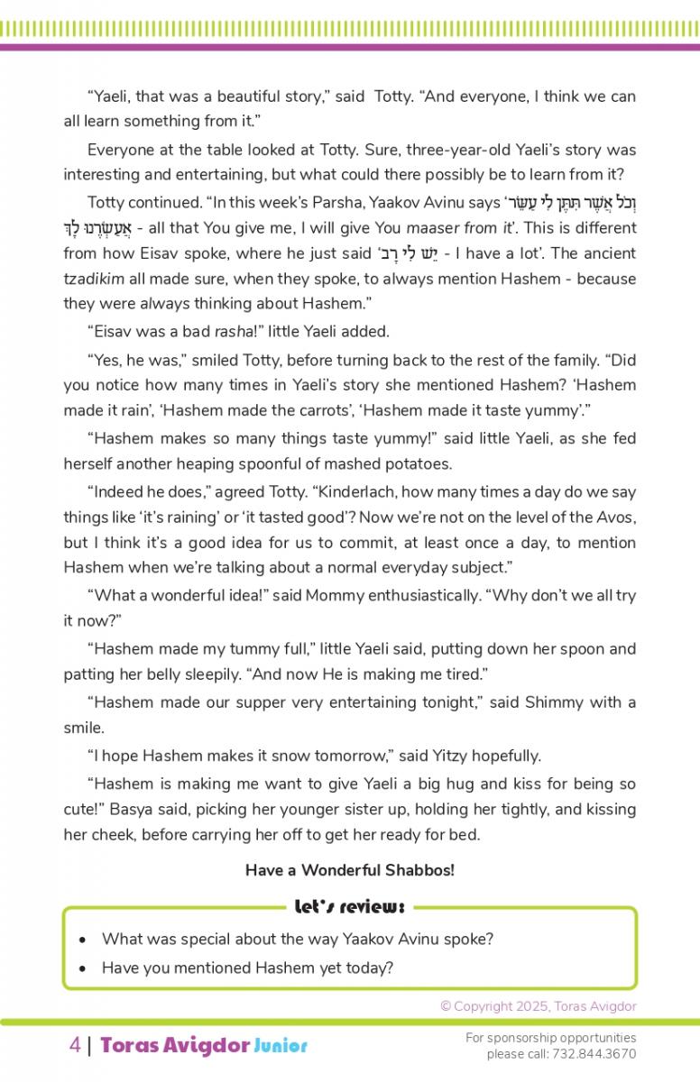 Toras Avigdor was founded with the goal of spreading Rav Miller’s Torah and Hashkafos bot for adults and children.