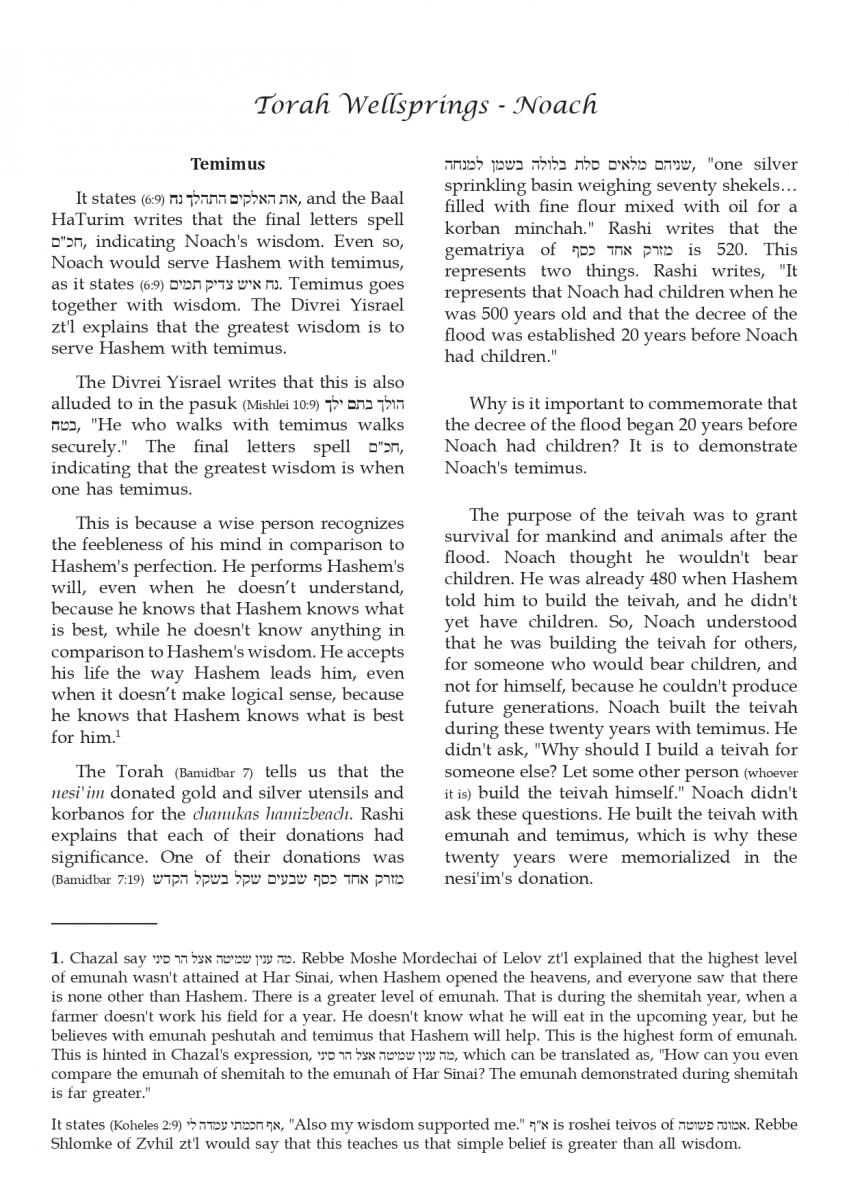 The weekly collected thoughts on the week's parsha from Rabbi Elimelech Biderman Shlita