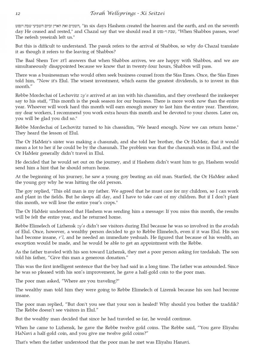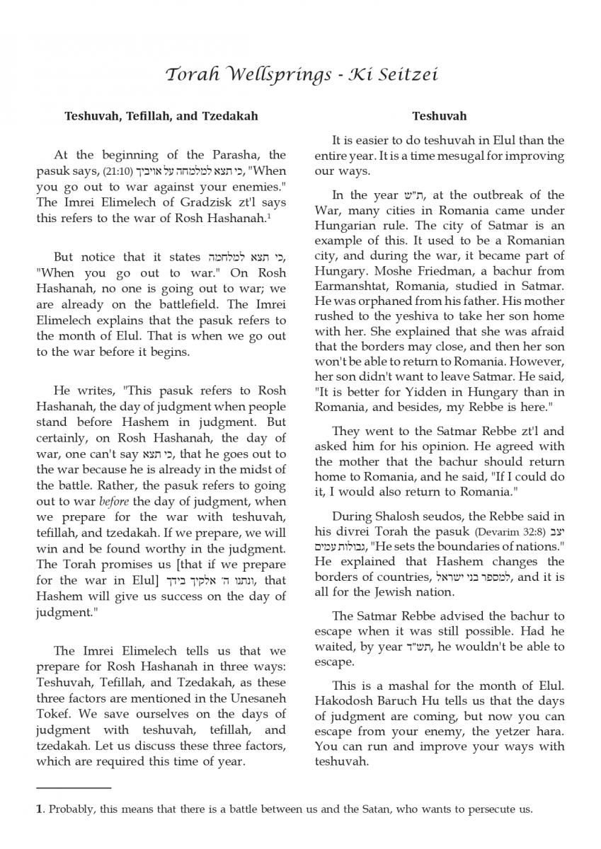 The weekly collected thoughts on the week's parsha from Rabbi Elimelech Biderman Shlita