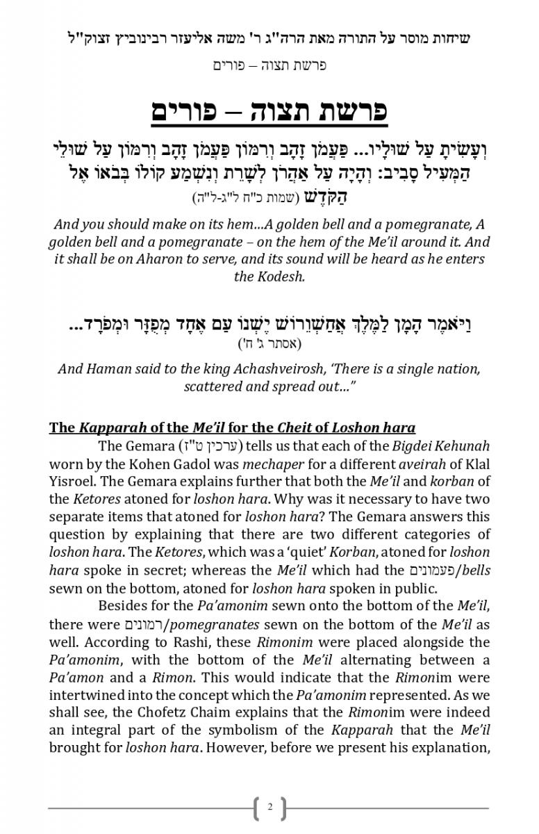 The Kapparah of the Me’il for the Cheit of Loshon hara