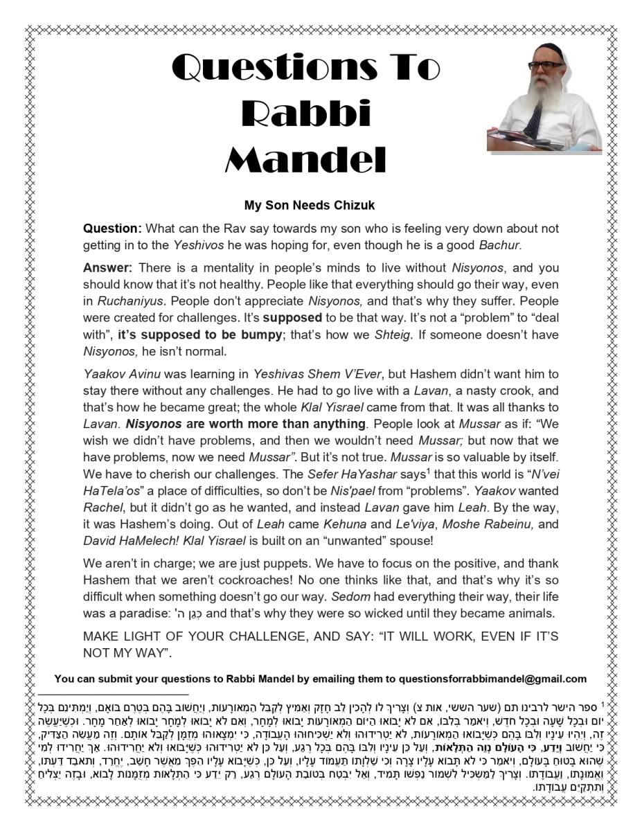 By Rabbi Mandel, who is from Lakewood, NY. His shiurim and words of Torah can be found on various platforms, including, TorahAnytime, Kol Halashon and in his weekly d'var Torah newsletter called Bitachon Weekly.