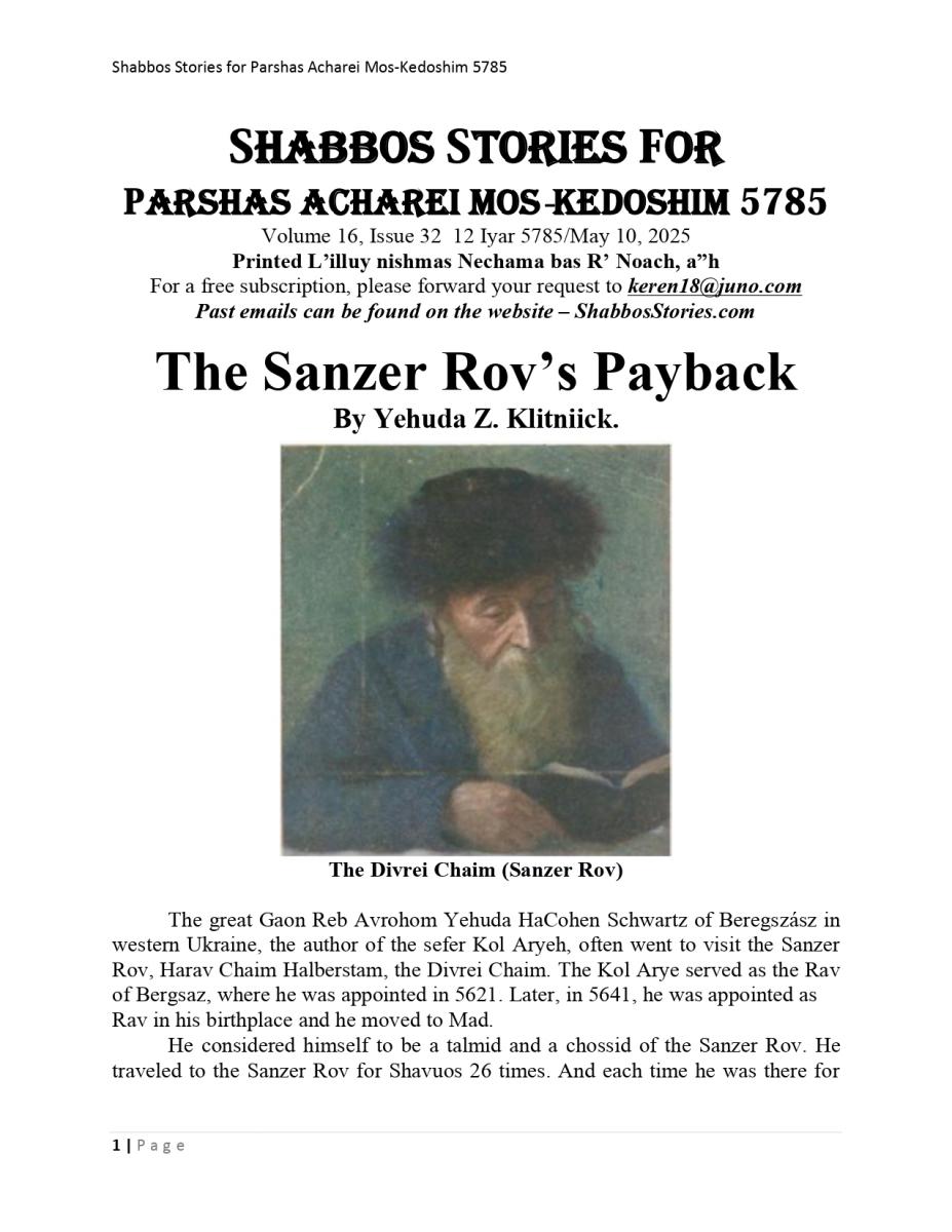 The Sanzer Rov’s Payback