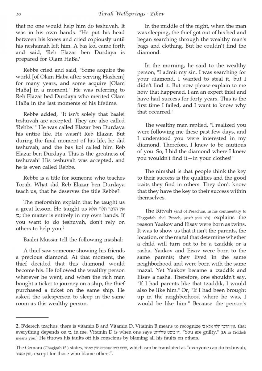 The weekly collected thoughts on the week's parsha from Rabbi Elimelech Biderman Shlita