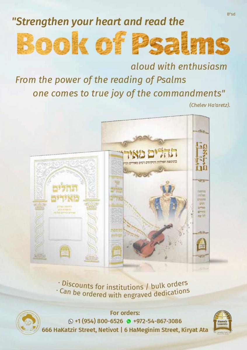 Rabbi Israel Abargel and Hameir Laarets work to spread Torah in Israel and around the world. Their activities include classes, lectures, and daily support and assistance to those in need. Hameir Laarets is a Torah Institute that deals with the publication and distribution of the works and teachings of Rabbi Yoram Michael Abargel zt”l. Hameir Laarets has already released over 50 books and more than 100,000 copies of our publication “Mesillot” are distributed free of charge every week. Our organization also provides daily support and assistance to those in need. Rabbi Yoram Michael Abergel, OB”M was the founder and head of Torah and Hessed institutions called Kol Rina Rav Phelim and Rav Phelim whose center is currently in Netivot . Over 4,000 Avrach scholars study in these institutions. He is the author of: - Bezur Yarom - his lessons on Sefer HaTanya, - Amri Noam - his lessons on the Parshiyot of the week and the festivals of Israel - Kol Rina - prayer arrangement and cycle series