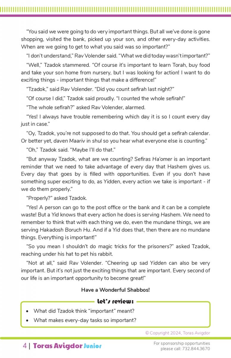 Toras Avigdor was founded with the goal of spreading Rav Miller’s Torah and Hashkafos bot for adults and children.