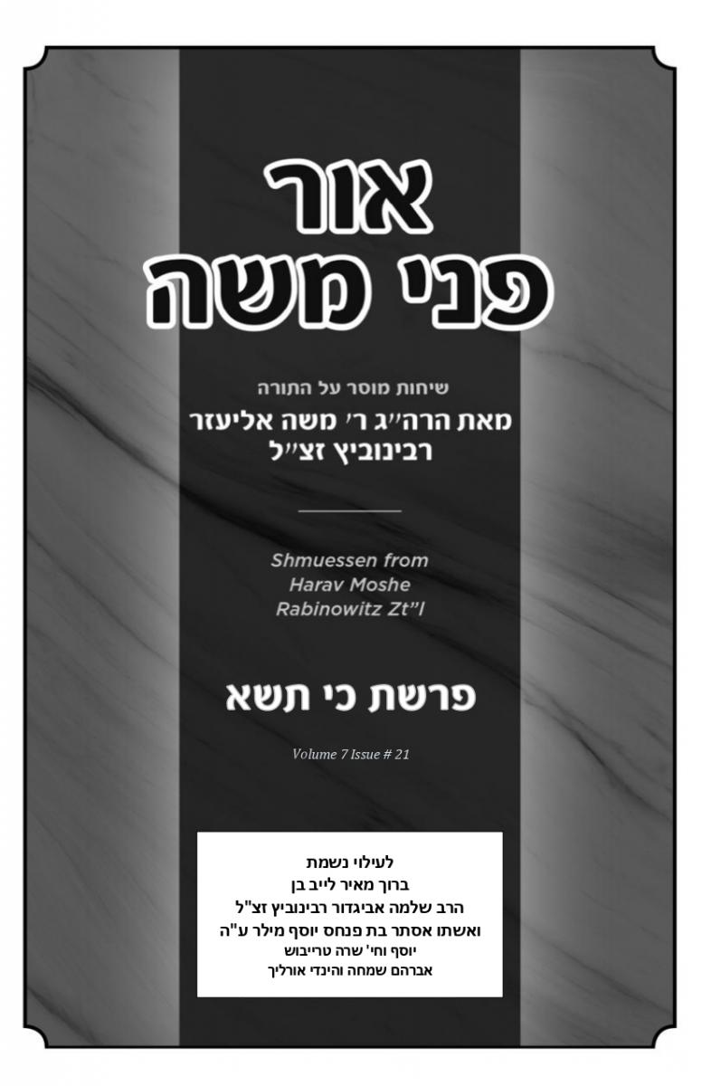 Hagaon Rav Moshe Eliezer Rabinowitz zt”l, was the menahel of Mesivta Keren Hatorah in Lakewood and rov of Bais Medrash Tiferes Shimon.