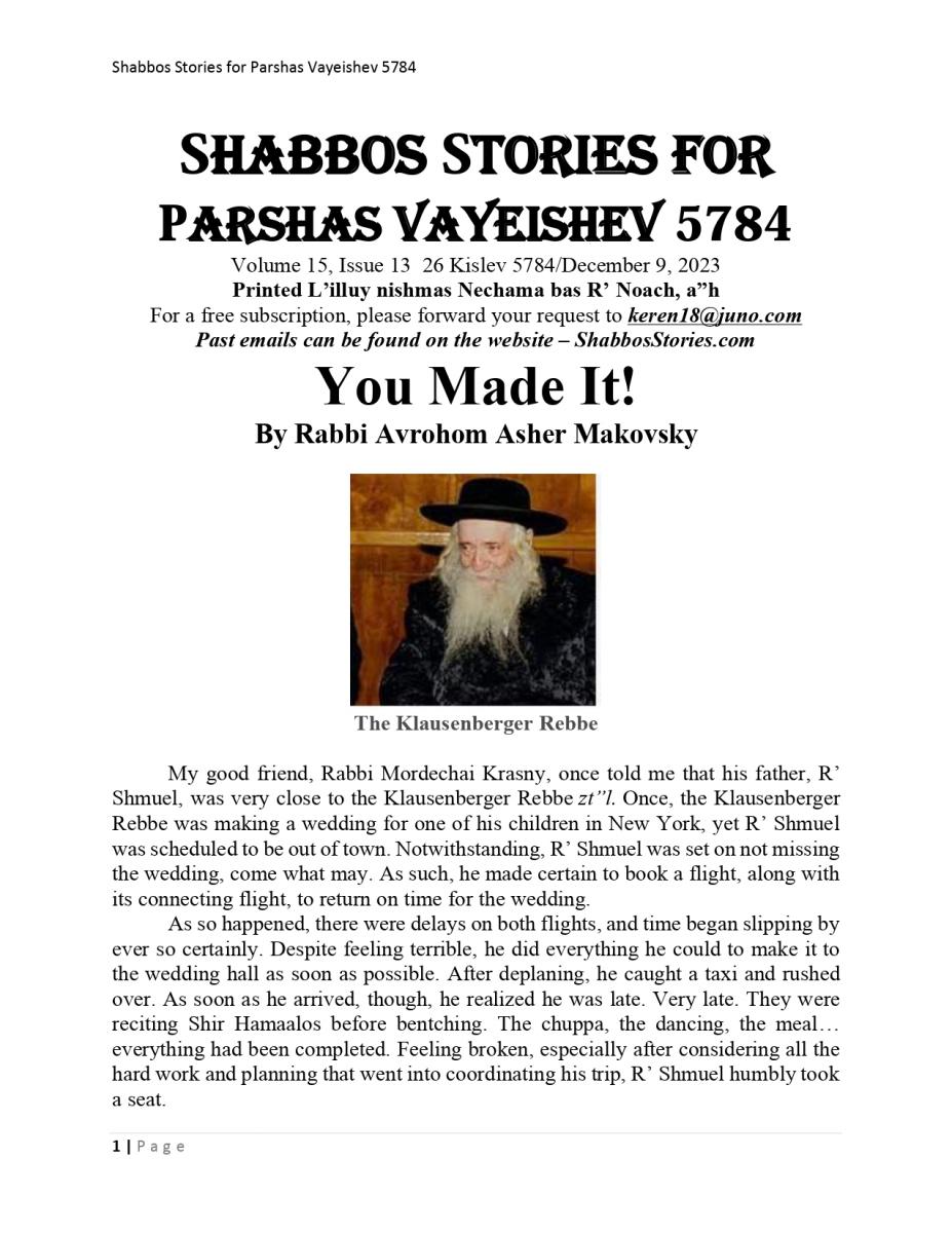 By Shabbos Stories Dec 05, 2023 09:25 AM